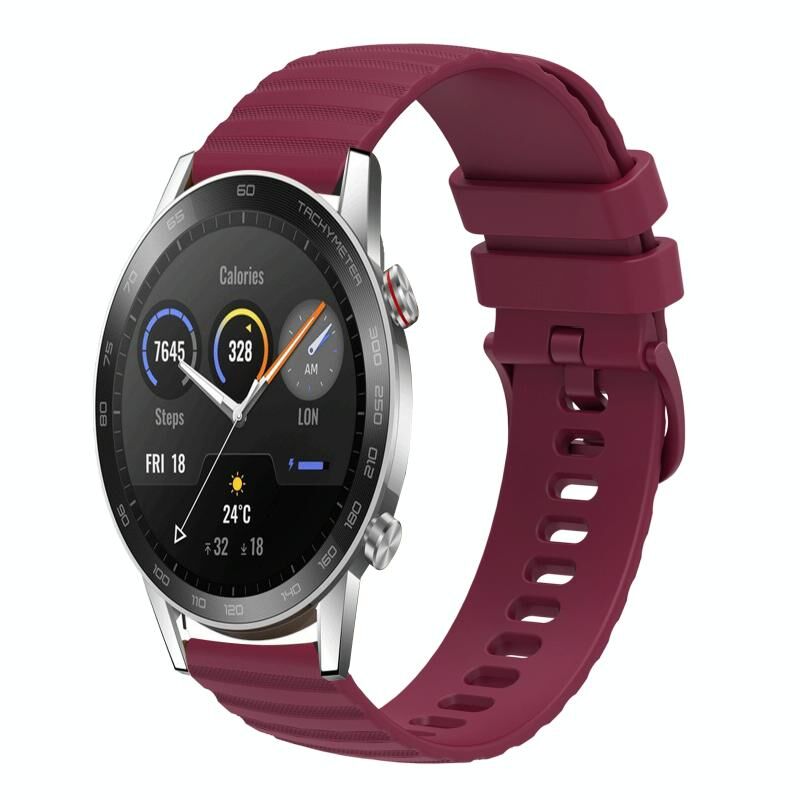 Για το Honor Magic Watch 2 46mm 22mm Wavy Dot Pattern Solid Color Silicone Watch Band (Wine Red)