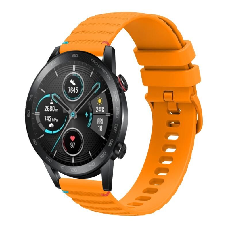For Honor Magic Watch 2 46mm Wavy Dotted Stitched 22mm Silicone Watch Band(Amber Yellow)