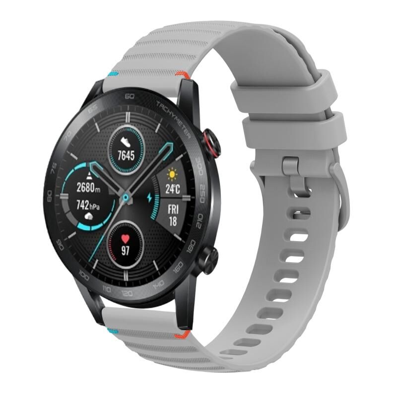 For Honor Magic Watch 2 46mm Wavy Dotted Stitched 22mm Silicone Watch Band(Gray)