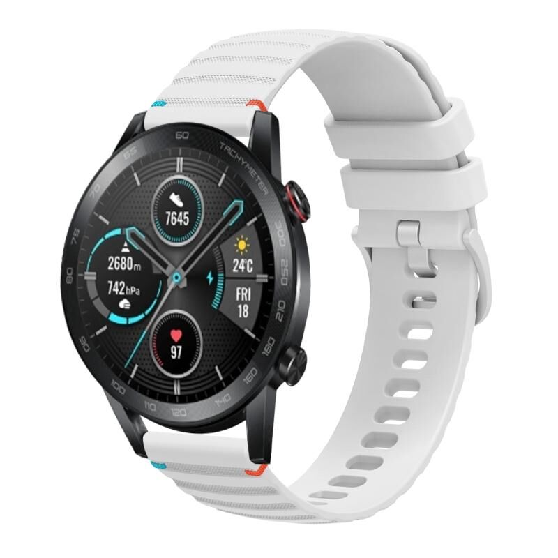 For Honor Magic Watch 2 46mm Wavy Dotted Stitched 22mm Silicone Watch Band(White)