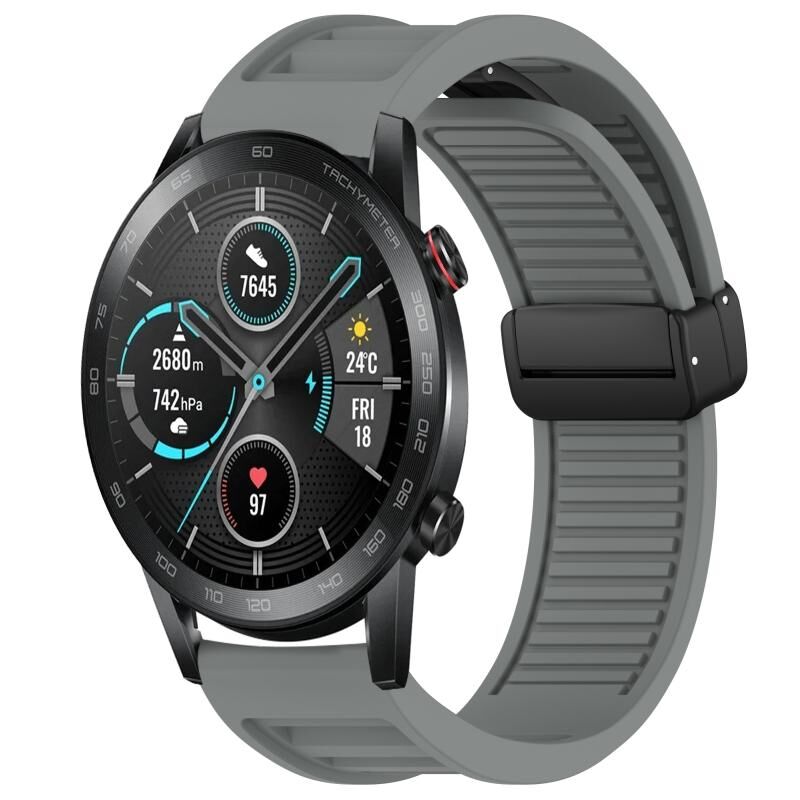 For Honor Magic Watch 2 46mm Window Blind Magnetic Buckle 22mm Silicone Watch Band(Dark Grey)