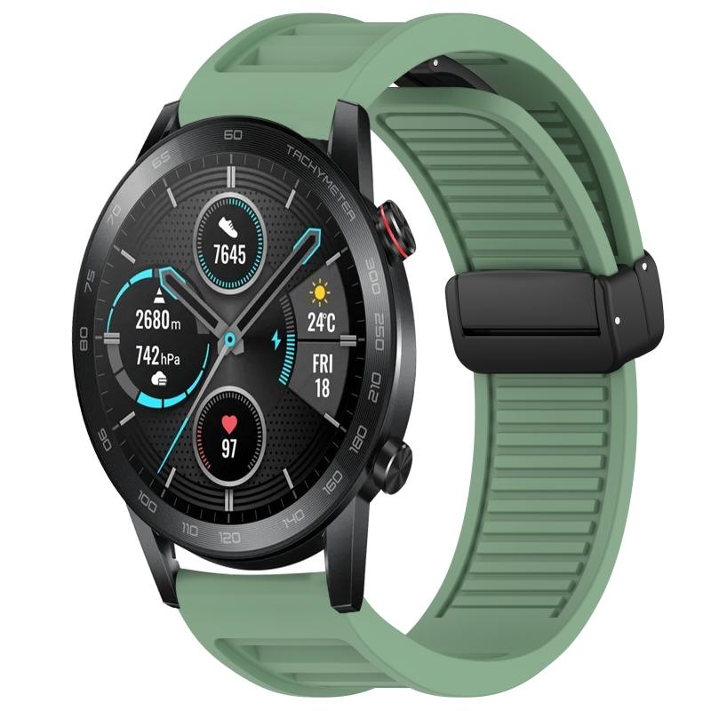 For Honor Magic Watch 2 46mm Window Blind Magnetic Buckle 22mm Silicone Watch Band(Pine Green)