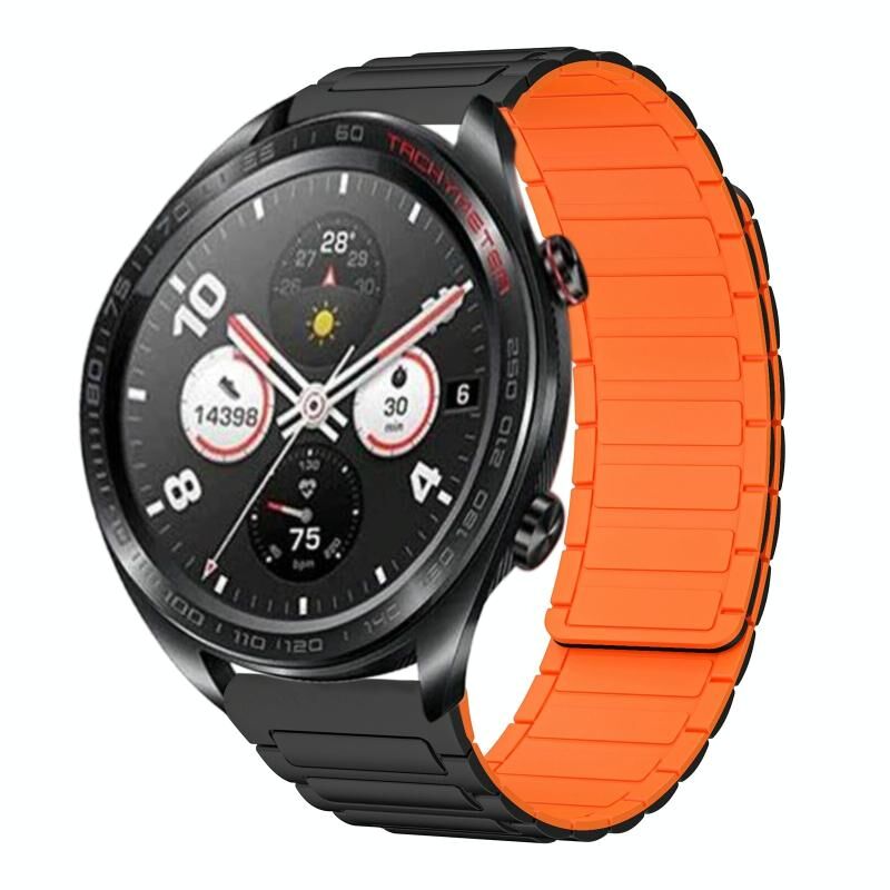 Για το ρολόι Honor Magic 22mm I-shaped Magnetic Silicone Watch Band (Μαύρο+Πορτοκαλί)