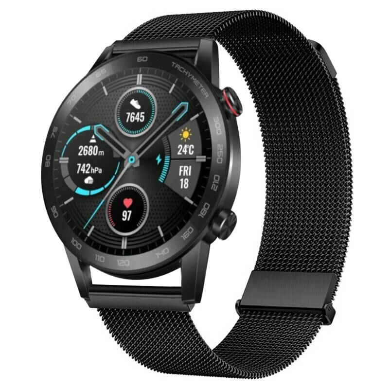 Για Honor Magic Watch Milan Διπλή μαγνητική ζώνη ρολογιού από χάλυβα (Μαύρο)