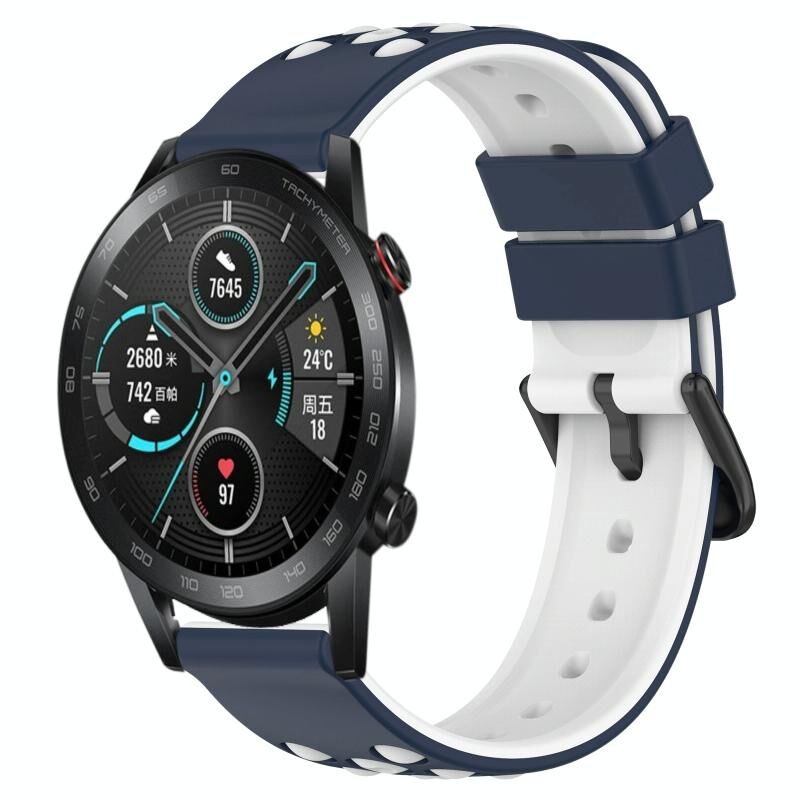 Για το Honor Magic Watch2 42mm 20mm Δύο χρωμάτων πορώδη ζώνη ρολογιού σιλικόνης (Μπλε μεσάνυχτα + Λευκό)