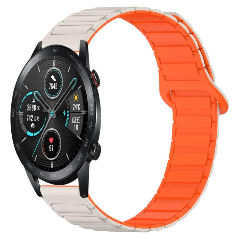 For Honor Magic Watch2 42mm Dual Color Magnetic Buckle 20mm Silicone Watch Band(Stralight+Orange)