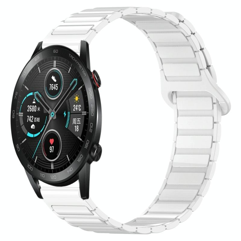 For Honor Magic Watch2 42mm Dual Color Magnetic Buckle 20mm Silicone Watch Band(White)