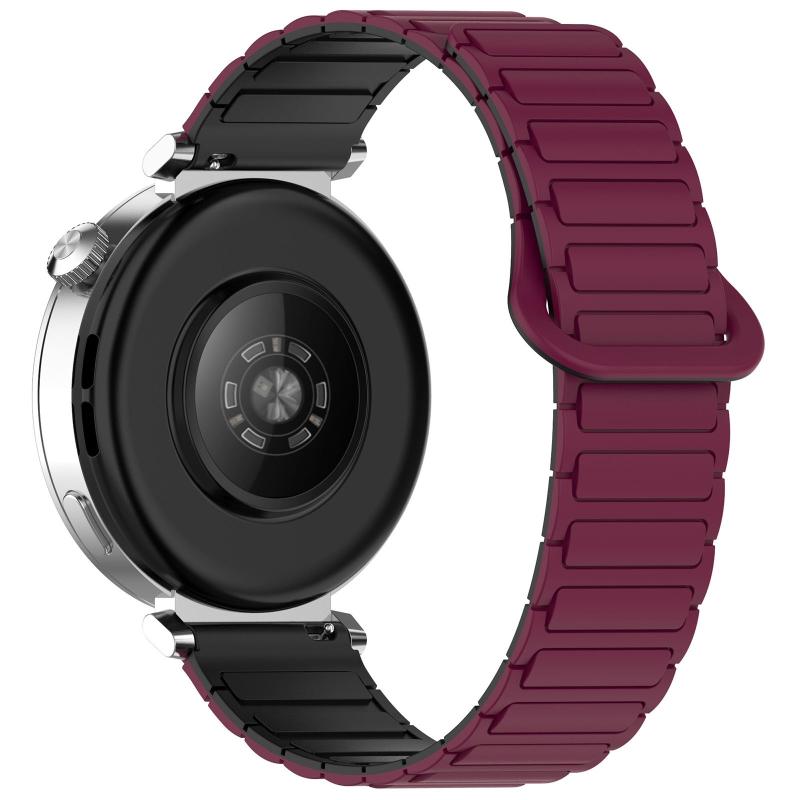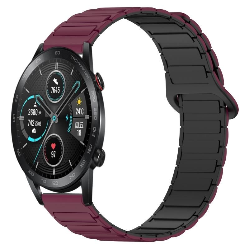 For Honor Magic Watch2 42mm Dual Color Magnetic Buckle 20mm Silicone Watch Band(Wine Red+Black)