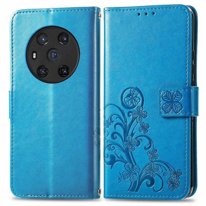 Για Honor Magic3 Τέσσερα φύλλα κούμπωμα ανάγλυφο αγκράφα δερμάτινη θήκη τηλεφώνου (μπλε)
