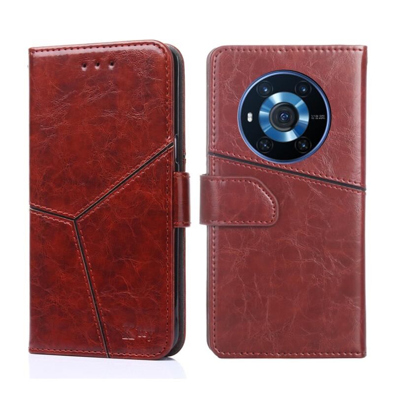 Για Honor Magic3 γεωμετρική ραφή οριζόντια Flip υπόθεση τηλεφώνου δέρμα (σκούρο καφέ)