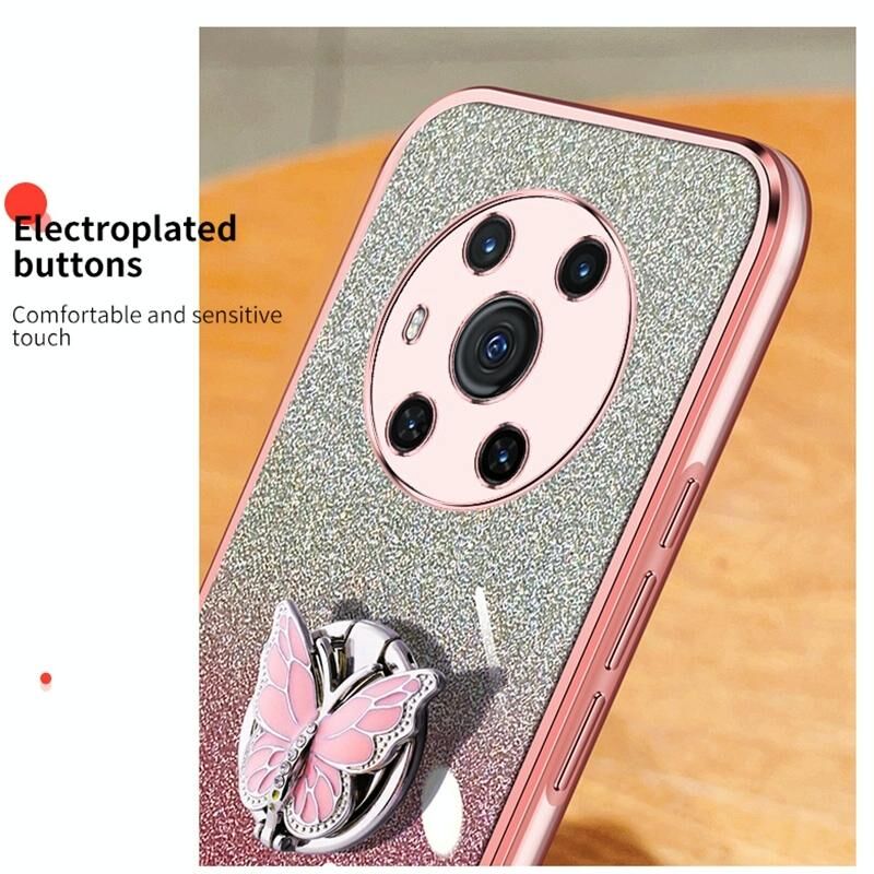 Θήκη κινητού τηλεφώνου TPU με σχέδιο πεταλούδας με γκλίτερ και διαβάθμιση χρώματος για Honor Magic3 (Ροζ)