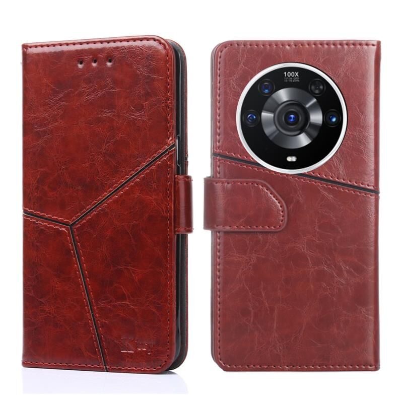 Για Honor Magic3 Pro γεωμετρική ραφή οριζόντια Flip υπόθεση τηλεφώνου δέρμα (σκούρο καφέ)
