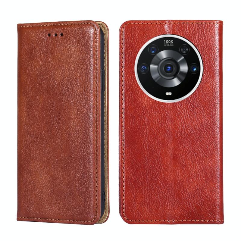 For Honor Magic3 Pro Gloss Oil Solid Color Magnetic Leather Phone Case(Brown)