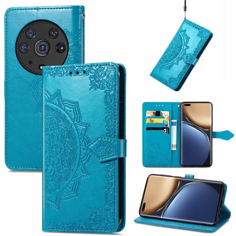 Για Honor Magic3 Pro Mandala λουλούδι ανάγλυφο Flip δερμάτινη θήκη τηλεφώνου (μπλε)