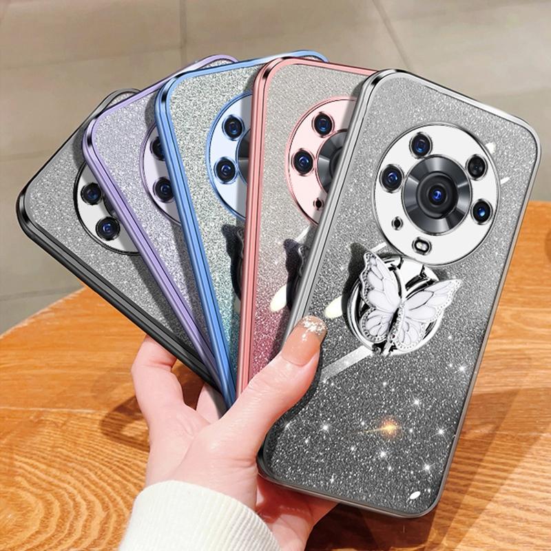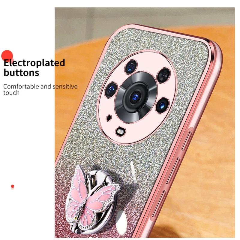 For Honor Magic3 Pro Plated Gradient Glitter Butterfly Holder TPU Phone Case(Black)