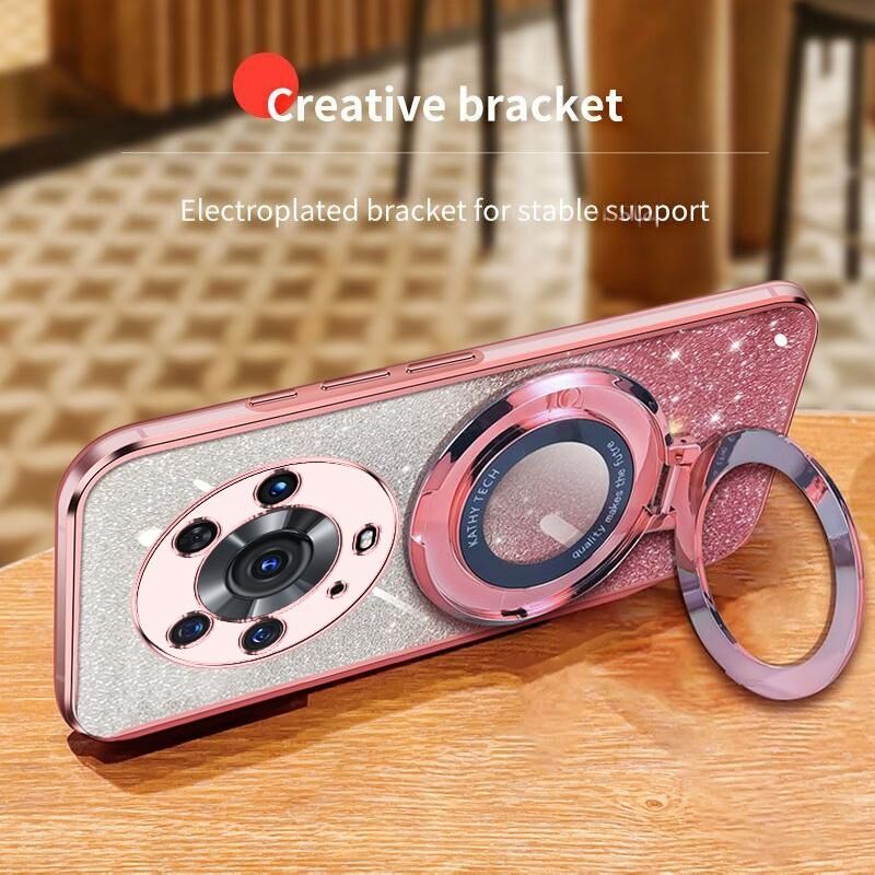 Για Honor Magic3 Pro Επιμεταλλωμένο βαθμιδωτή Glitter στρογγυλή κάτοχος TPU τηλέφωνο υπόθεση (μαύρο)