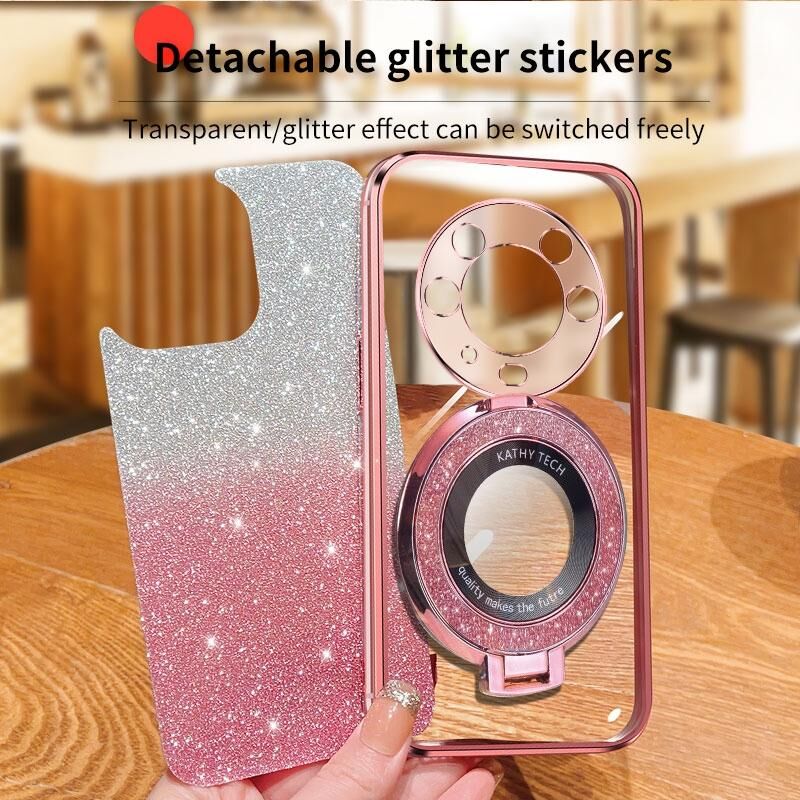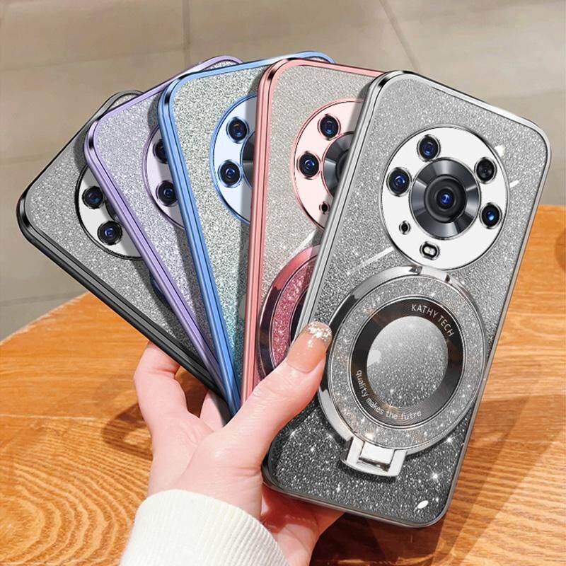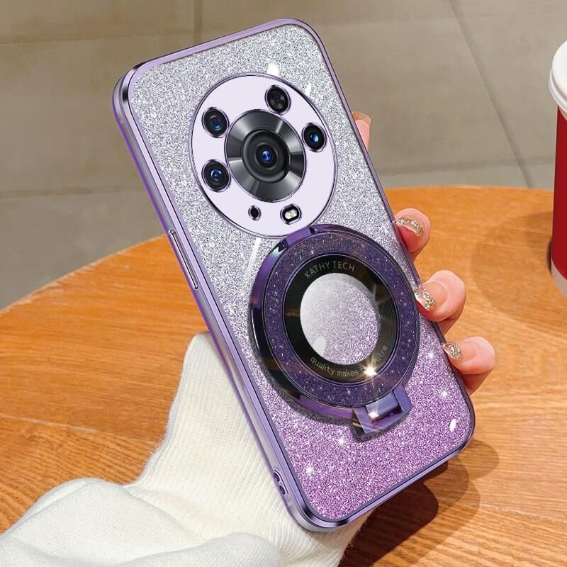 Για Honor Magic3 Pro Επιμεταλλωμένο διαβαθμισμένη Glitter στρογγυλή κάτοχος TPU τηλέφωνο υπόθεση (μωβ)