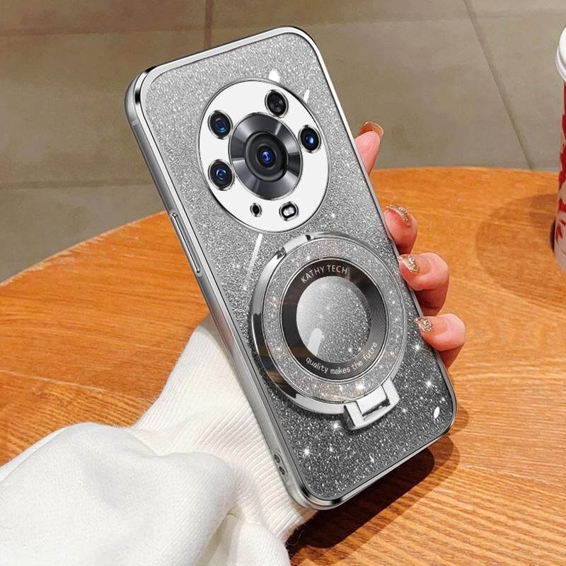 Για Honor Magic3 Pro επιμεταλλωμένο βαθμιδωτή Glitter στρογγυλή κάτοχος TPU τηλέφωνο υπόθεση (ασημί)