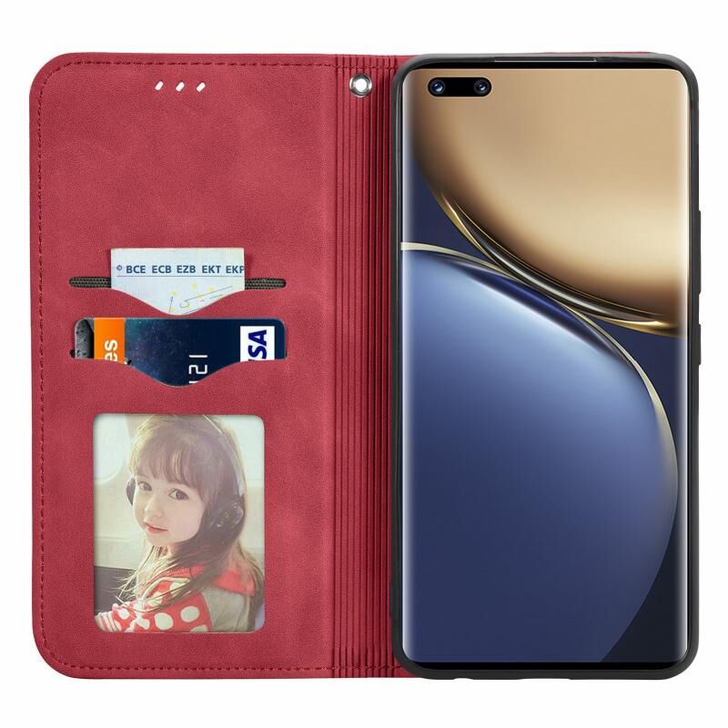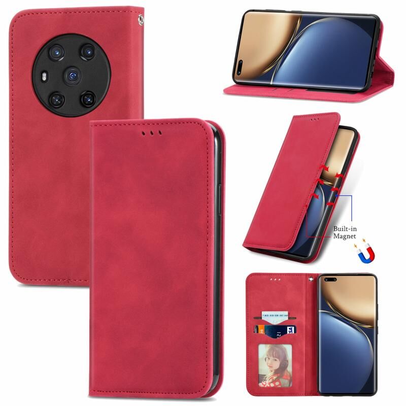 Για Honor Magic3 Ρετρό δέρμα αίσθηση μαγνητική οριζόντια Flip δέρμα τηλέφωνο υπόθεση (κόκκινο)