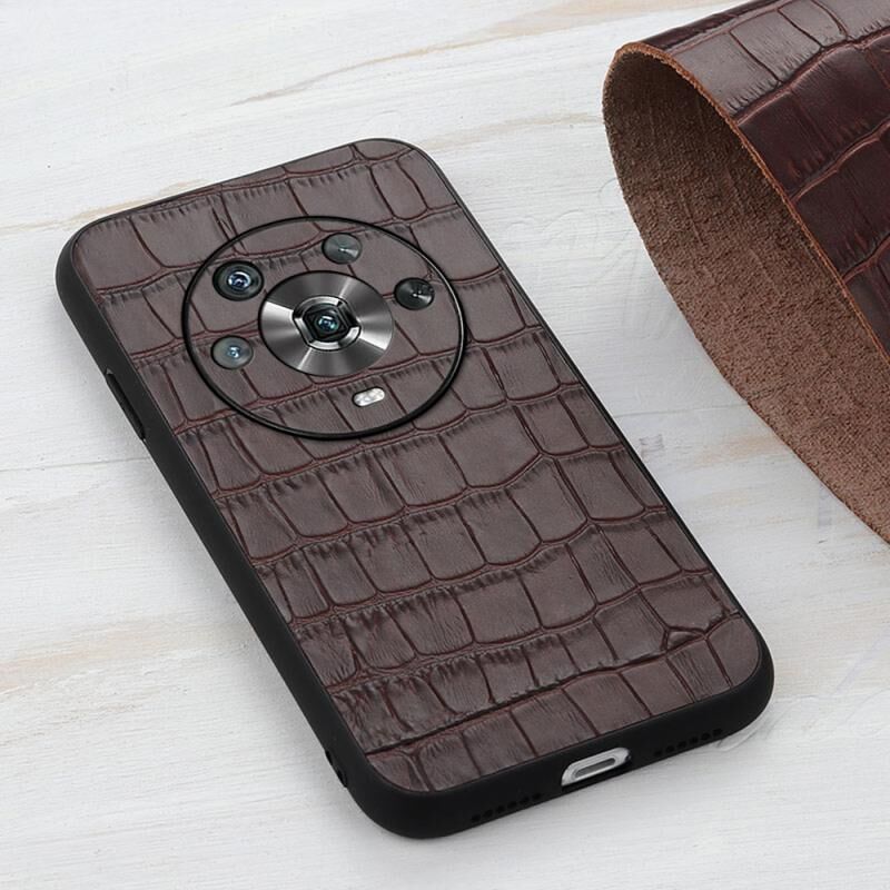 Θήκη τηλεφώνου από γνήσιο δέρμα με υφή κροκόδειλου και ακριβείς οπές για Honor Magic4 (Μαύρο)