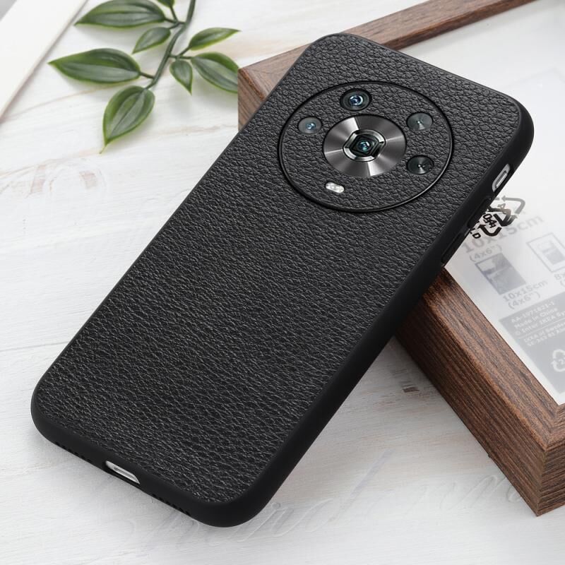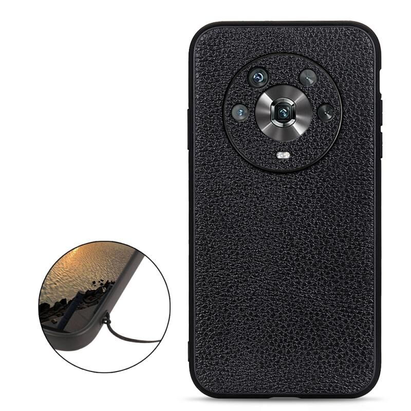 Θήκη τηλεφώνου από γνήσιο δέρμα Litchi με ακριβείς οπές για Honor Magic4 (Μαύρο)