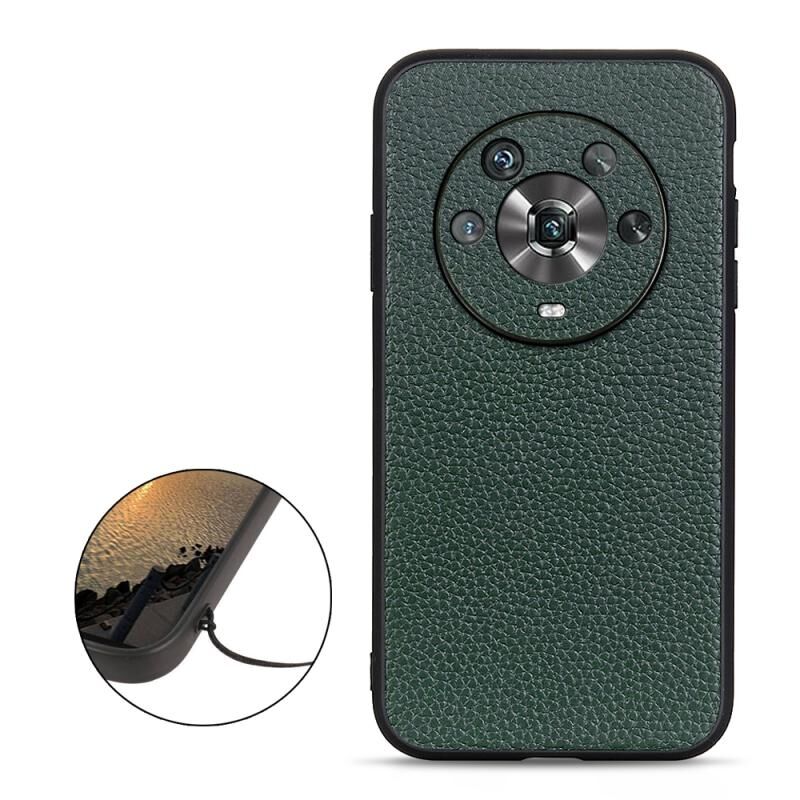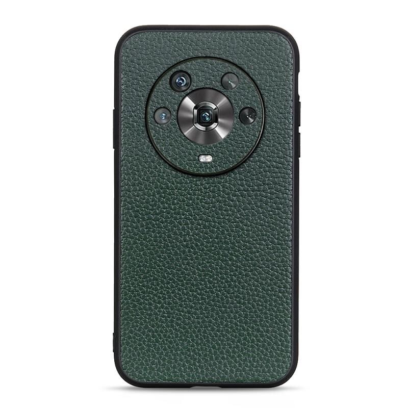 Θήκη τηλεφώνου από γνήσιο δέρμα Litchi με ακριβείς οπές για Honor Magic4 (Μαύρο)