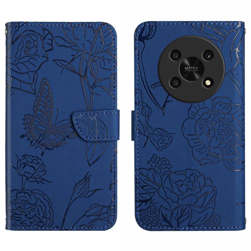 For Honor Magic4 Lite 5G Skin Feel Butterfly Peony Embossed Leather Phone Case(Blue)