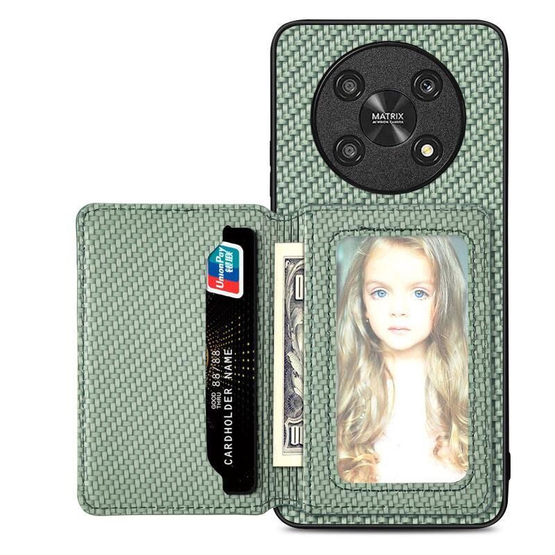 Για Honor Magic4 Lite Carbon Fiber μαγνητική κάρτα τσάντα υπόθεση τηλεφώνου (Πράσινο)