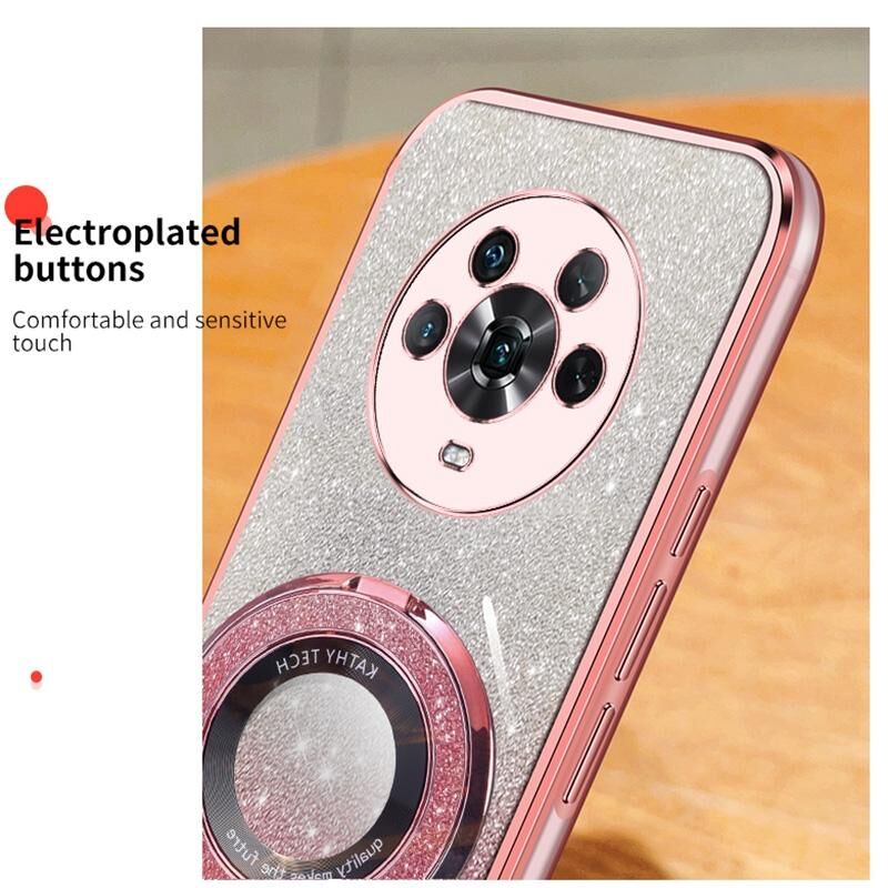 Για Honor Magic4 επιμεταλλωμένο διαβαθμισμένη Glitter στρογγυλή κάτοχος TPU τηλέφωνο υπόθεση (ροζ)