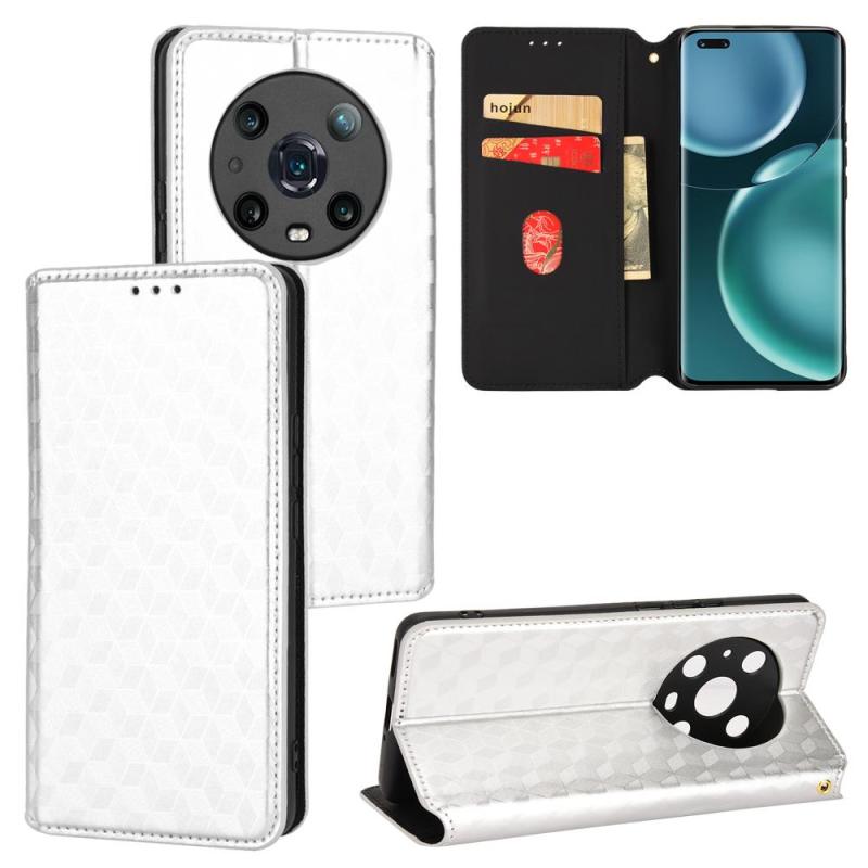 For Honor Magic4 Pro 5G Cubic Grid Texture Flip Leather Phone Case(Silver)