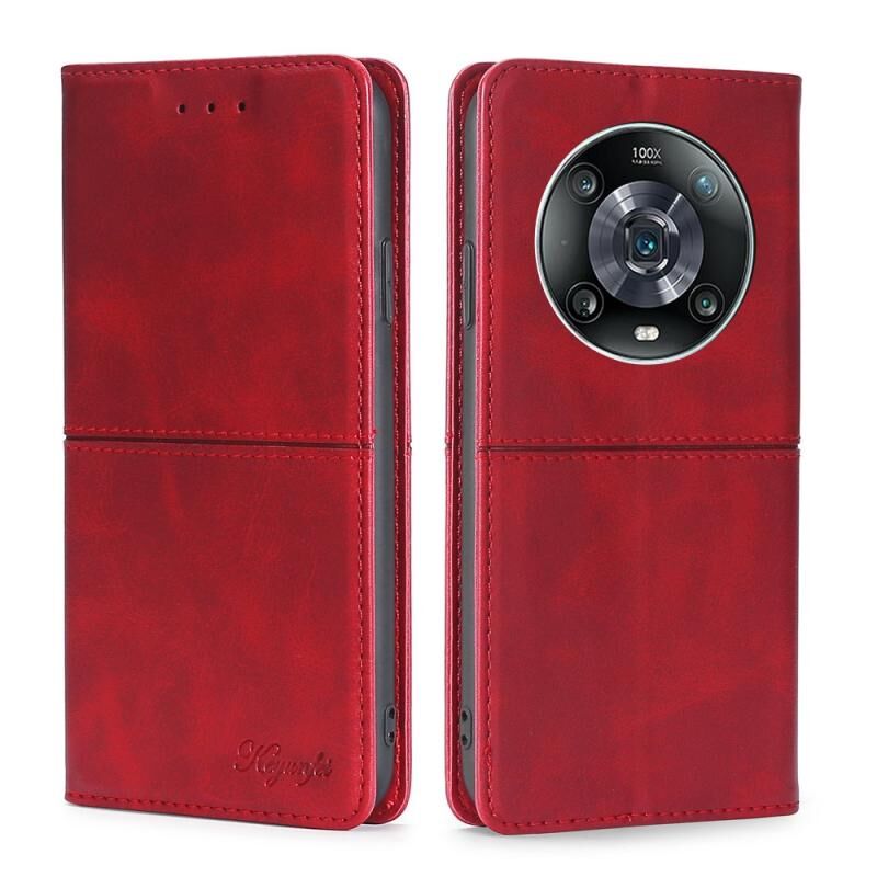 Για Honor Magic4 Pro Cow Texture μαγνητική οριζόντια Flip δέρμα τηλέφωνο υπόθεση (κόκκινο)