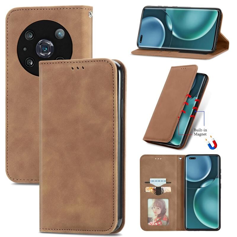 Για Honor Magic4 Pro Ρετρό δέρμα αίσθηση μαγνητικό δέρμα τηλέφωνο υπόθεση (καφέ)