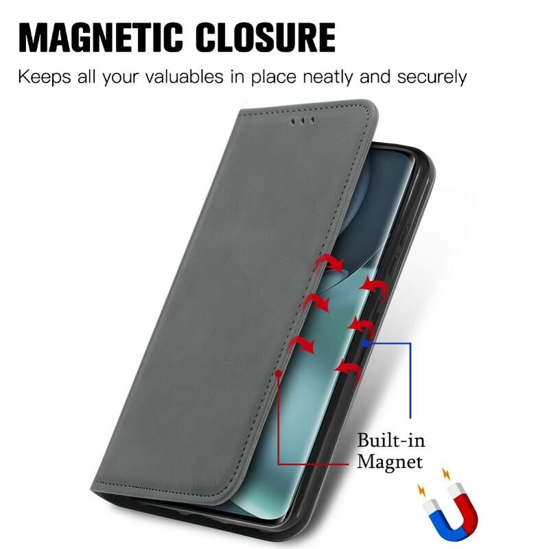 Για Honor Magic4 Pro Ρετρό δέρμα αίσθηση μαγνητικό δέρμα τηλέφωνο υπόθεση (γκρι)
