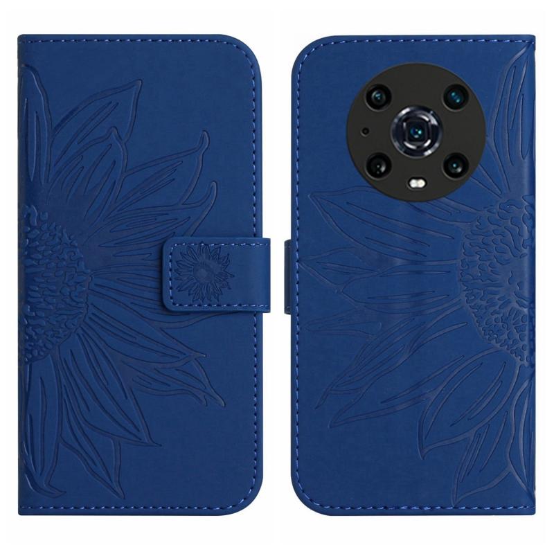 Θήκη τηλεφώνου από δέρμα με σχέδιο ηλίανθου και λουρί για Honor Magic4 Pro, με αίσθηση απαλότητας (Κόκκινο Ρόδι)