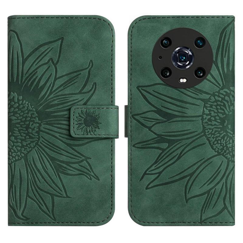 Θήκη τηλεφώνου από δέρμα με σχέδιο ηλίανθου και λουρί για Honor Magic4 Pro, με αίσθηση απαλότητας (Κόκκινο Ρόδι)
