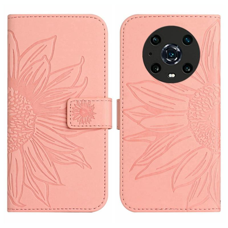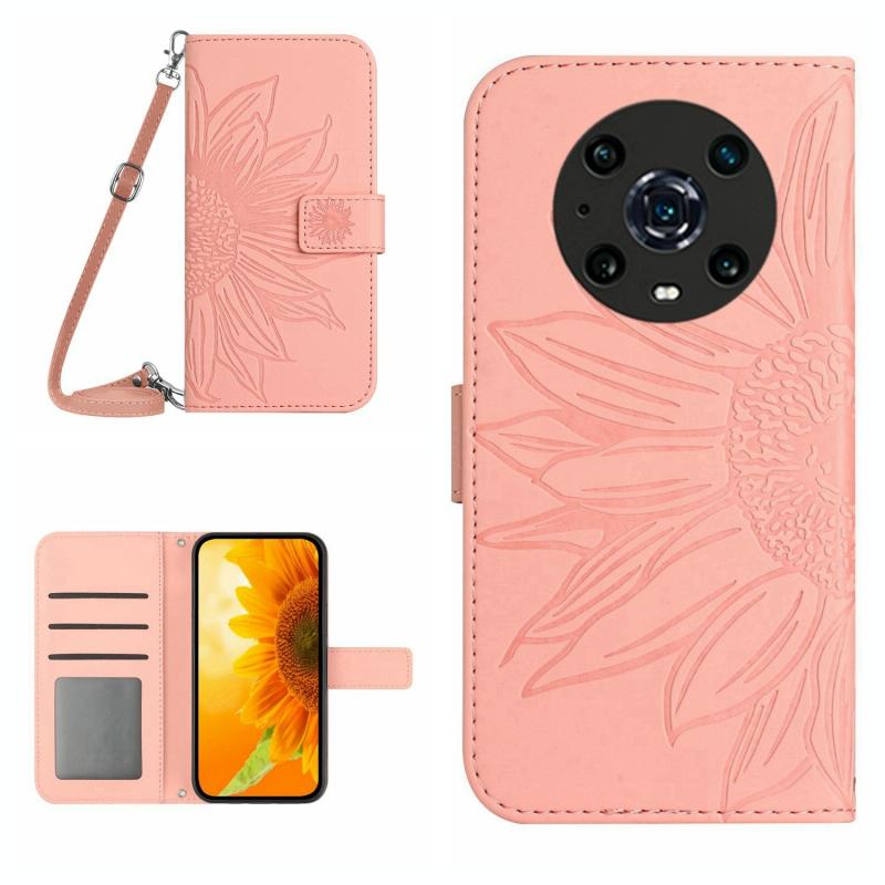 Θήκη τηλεφώνου από δέρμα με σχέδιο ηλίανθου και αίσθηση μαλακού αφής για Honor Magic4 Pro, με λουρί (Ροζ)