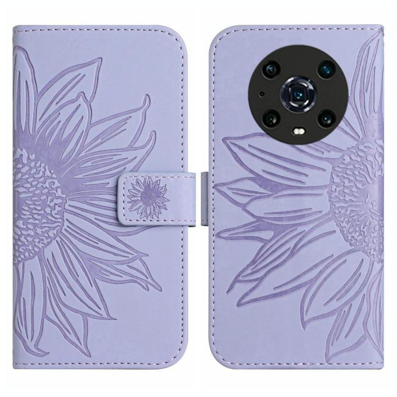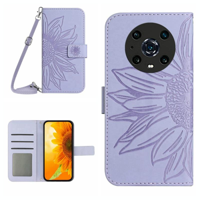 Θήκη τηλεφώνου από δέρμα με σχέδιο ηλίανθου και αίσθηση μαλακού αφής για Honor Magic4 Pro, με λουρί (Ροζ)