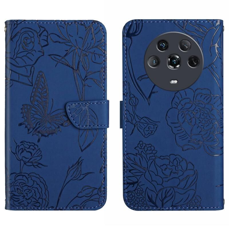 Θήκη τηλεφώνου από δέρμα με ανάγλυφο σχέδιο πεταλούδας και παιωνίας για Honor Magic4 (Μαύρο)