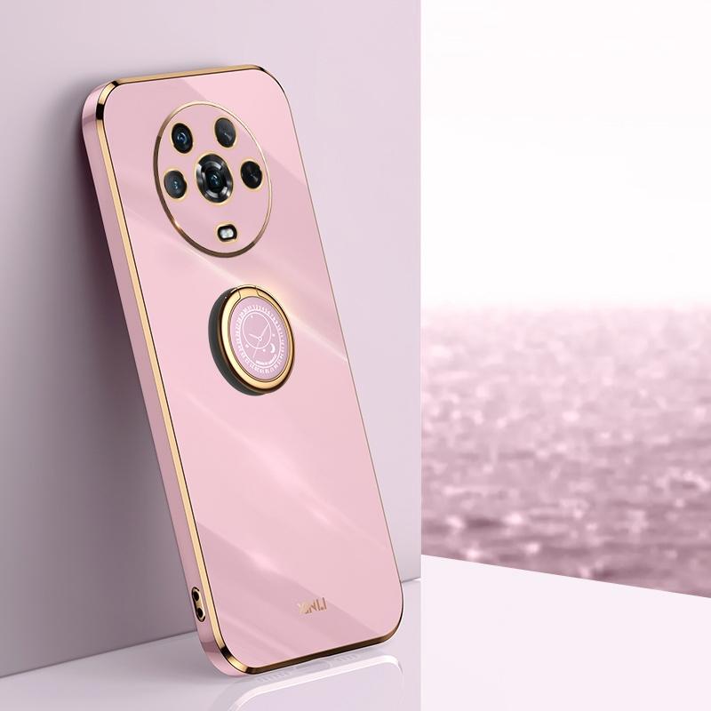 Θήκη κινητού τηλεφώνου For Honor Magic4 XINLI με ευθεία άκρη, 6D επιμετάλλωση TPU με δακτύλιο στήριξης (Κόκκινο Hawthorn)