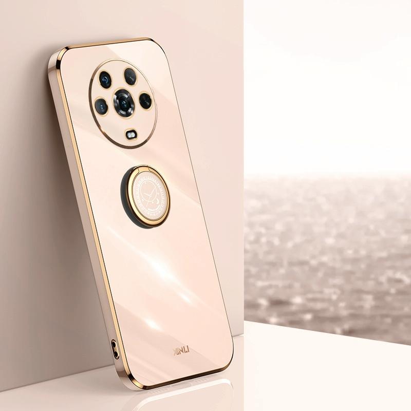 Θήκη κινητού τηλεφώνου For Honor Magic4 XINLI με ευθεία άκρη, 6D επιμετάλλωση TPU με δακτύλιο στήριξης (Μέντα Πράσινο)