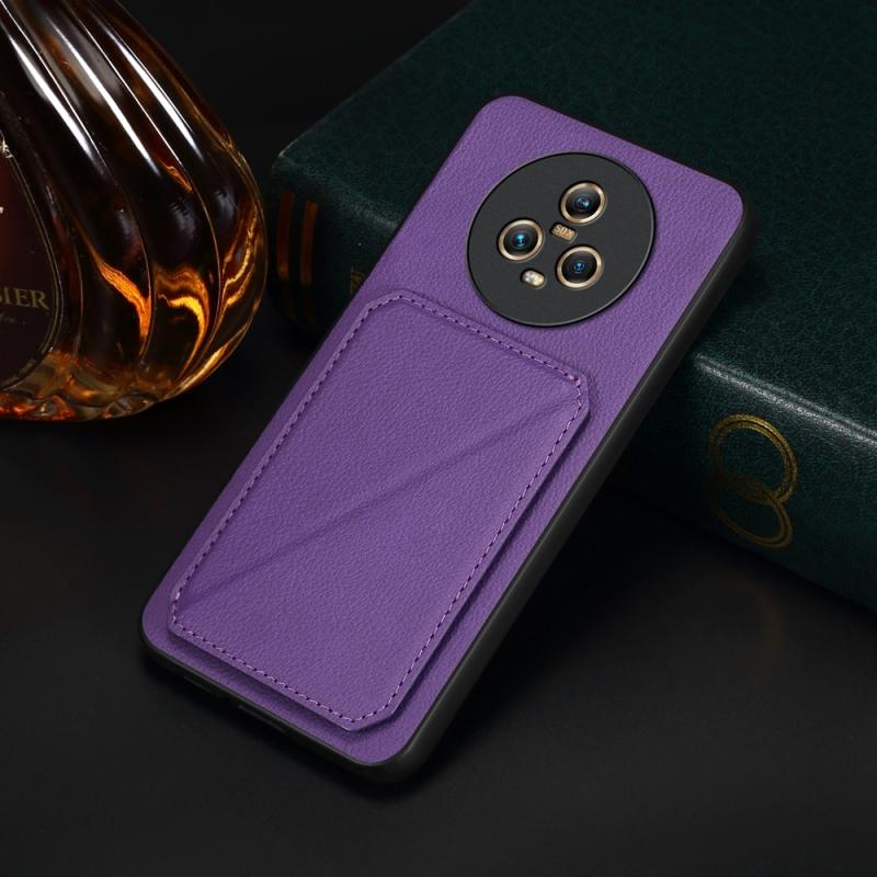 For Honor Magic5 5G D04 Calf Texture Dual Card Slot Holder Phone Case(Purple)