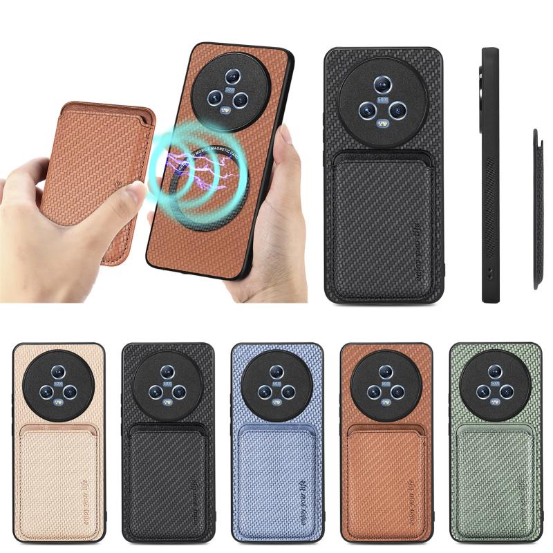 For Honor Magic5 Carbon Fiber Leather Card Magsafe Magnetic Phone Case(Brown)