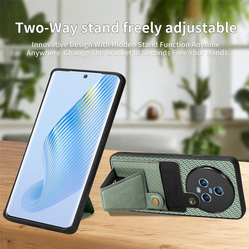 For Honor Magic5 Carbon Fiber Wallet Flip Card K-shaped Holder Phone Case(Green)