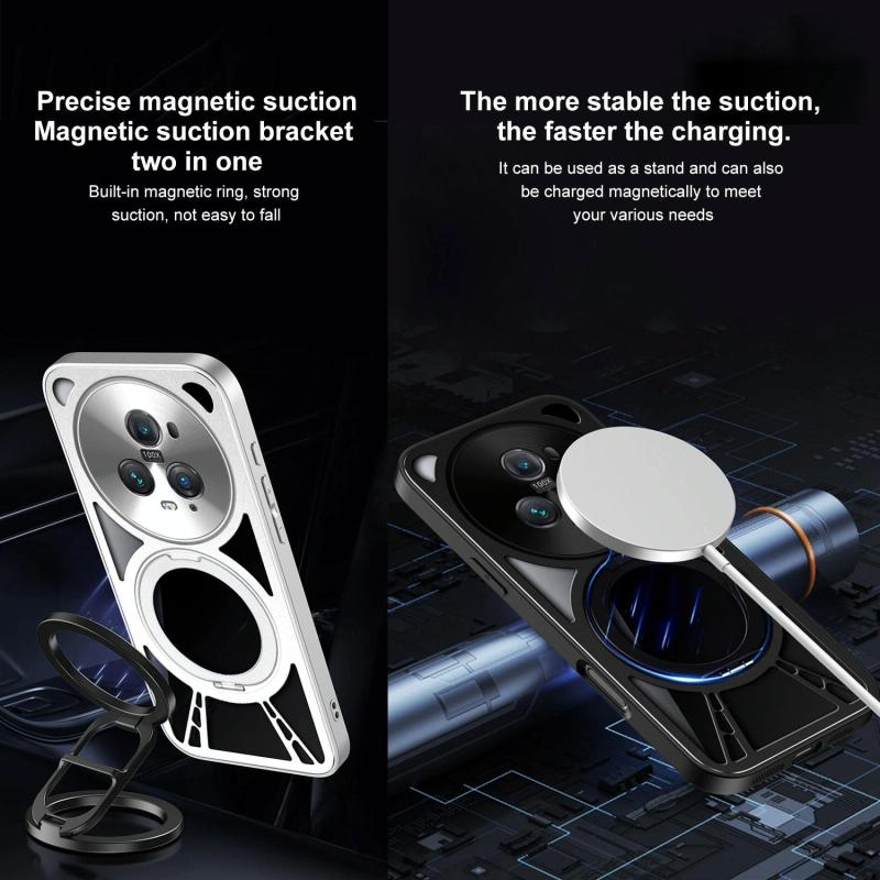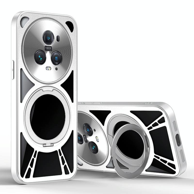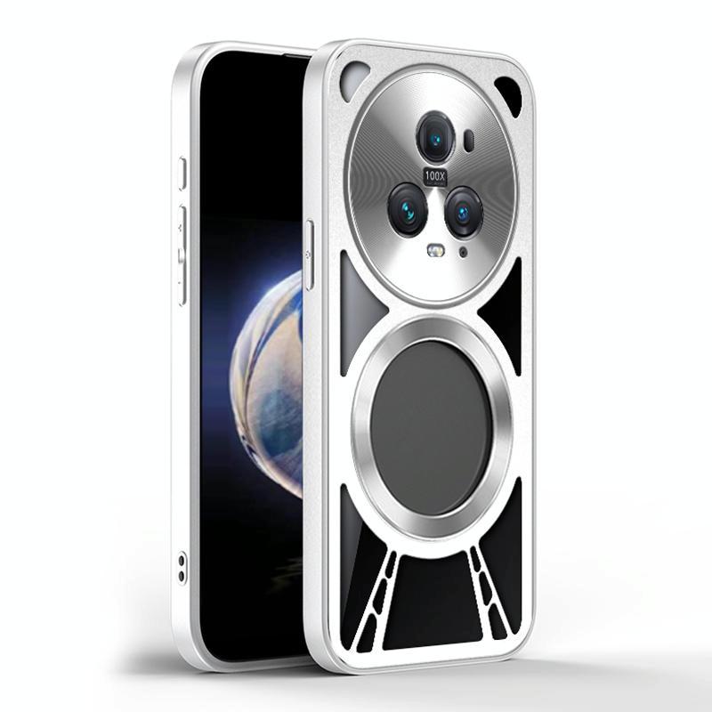For Honor Magic5 Cooling Hollow Metal Holder MagSafe Phone Case(Silver)