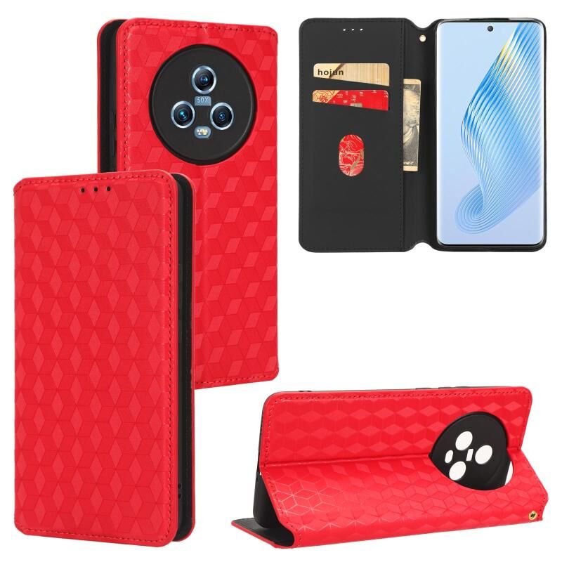 Θήκη τηλεφώνου For Honor Magic5 Cubic Grid Texture Flip από δέρμα (Κόκκινο)