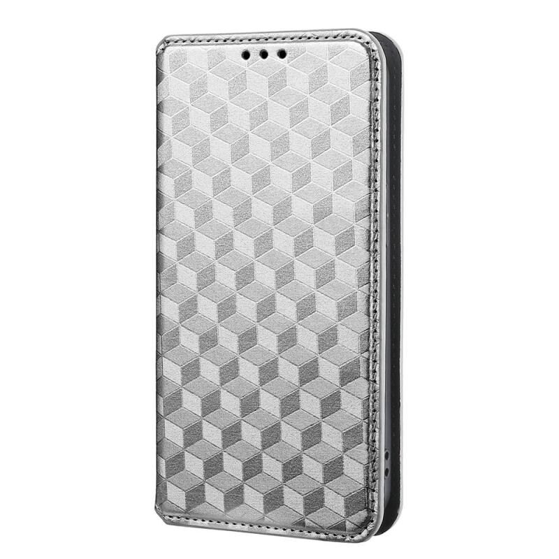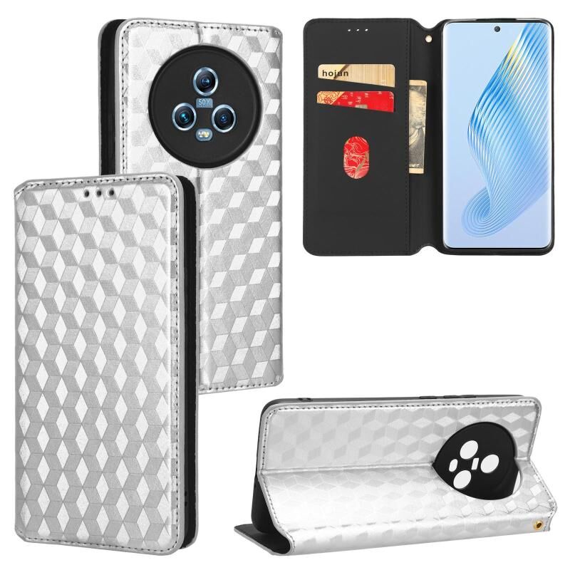 Θήκη τηλεφώνου For Honor Magic5 Cubic Grid Texture Flip από δέρμα (Ασημί)