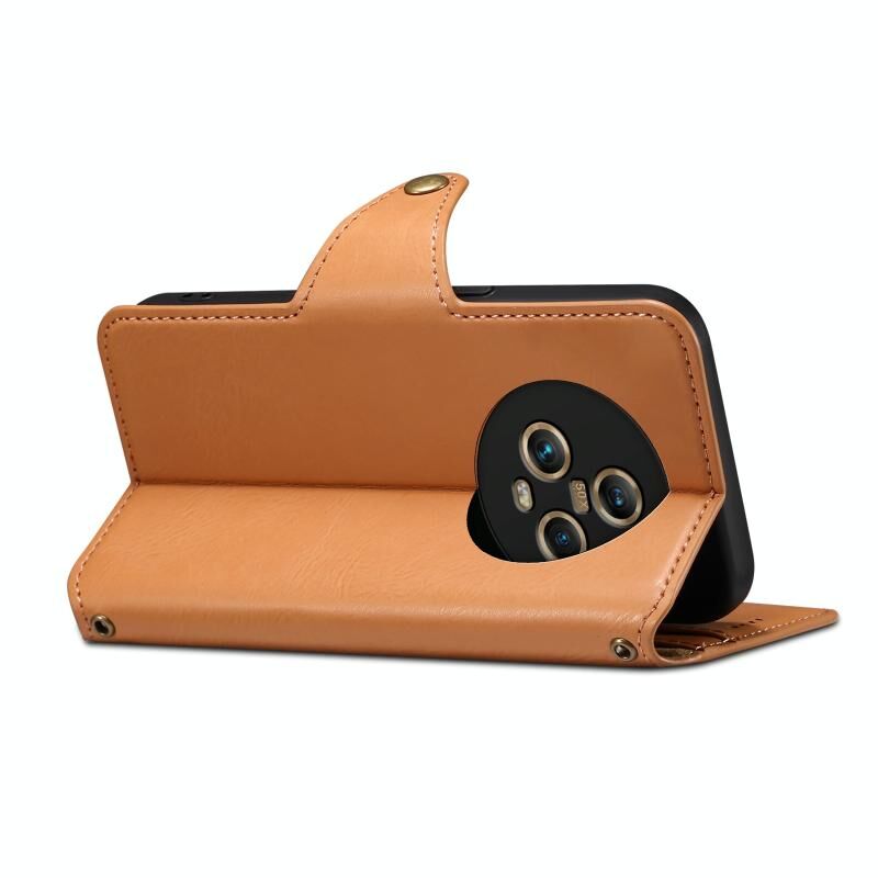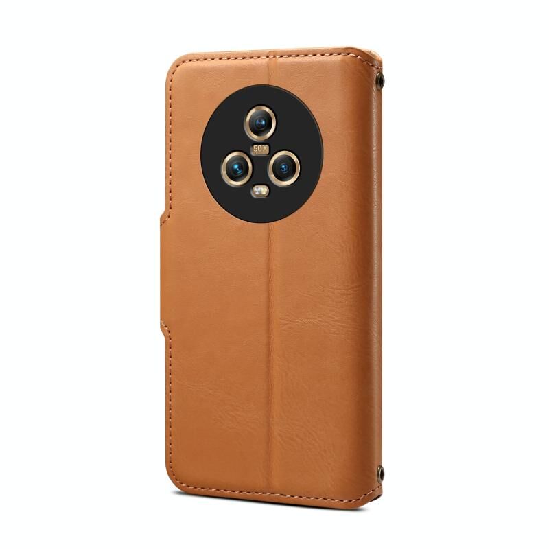 Για Honor Magic5 Denior Cowhide Υφή πορτοφόλι στυλ δερμάτινη θήκη τηλεφώνου (χακί) (Denior)