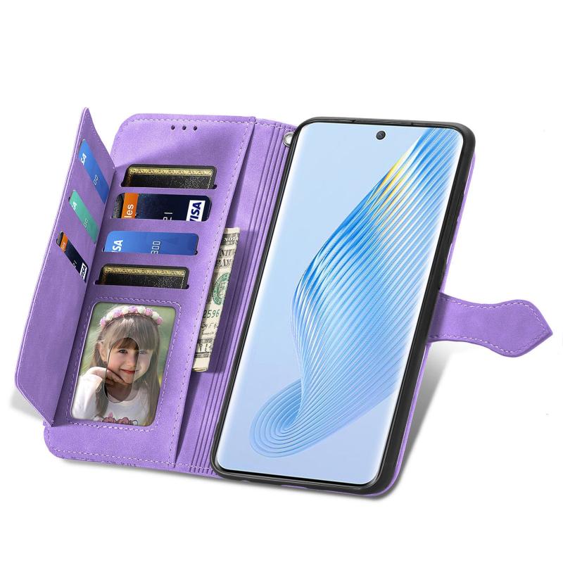 Θήκη κινητού τηλεφώνου από δέρμα με ανάγλυφο λουλούδι και φερμουάρ για Honor Magic5 (Μωβ)