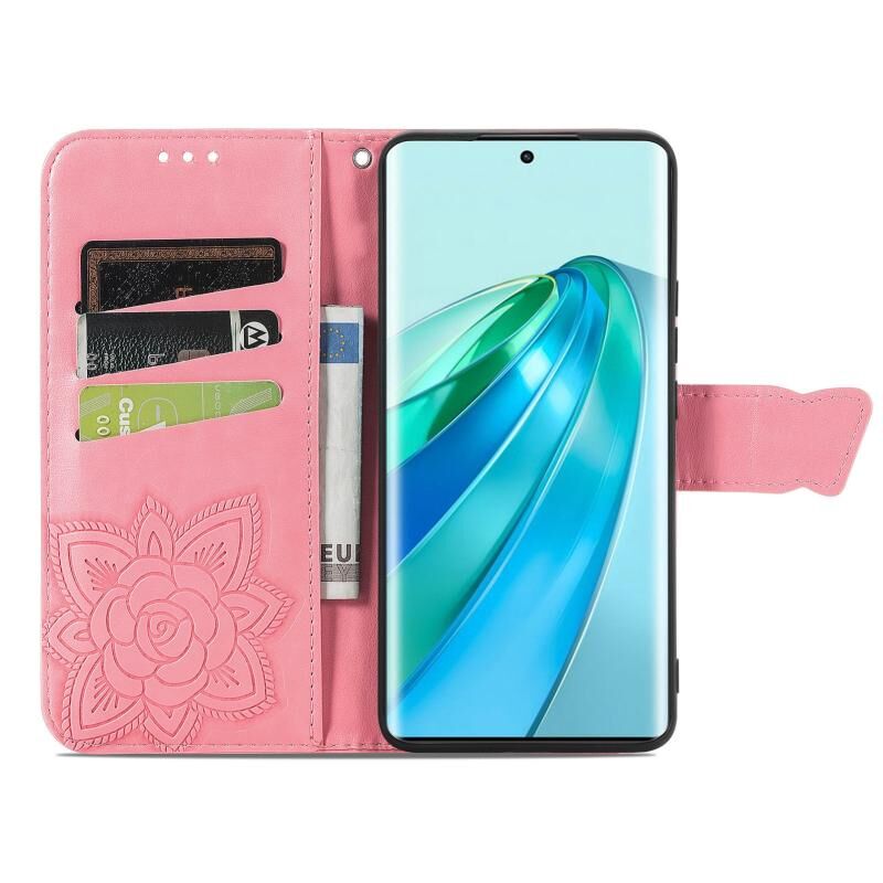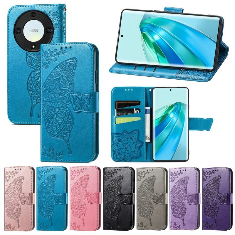 Θήκη τηλεφώνου από δέρμα με ανάγλυφο σχέδιο πεταλούδας και λουλουδιών για Honor Magic5 Lite (Μπλε)