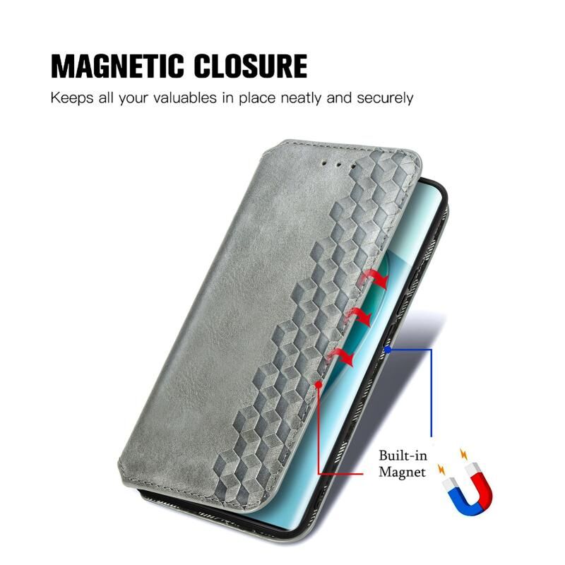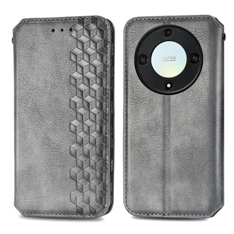 Για Honor Magic5 Lite Cubic Grid Pressed μαγνητική PU δερμάτινη θήκη (γκρι)